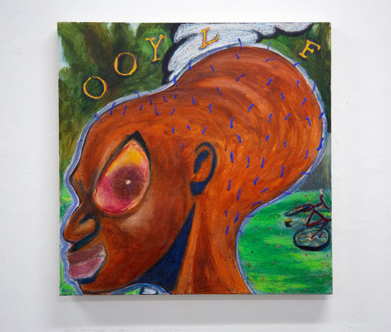 acrylic, marker, oil pastel, glitter glue, and shellac on canvas